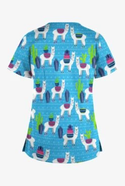 UA Butter-Soft STRETCH Llama Vacation Turquoise Women’s 4-Pocket Crisscross Printed Scrub Top
