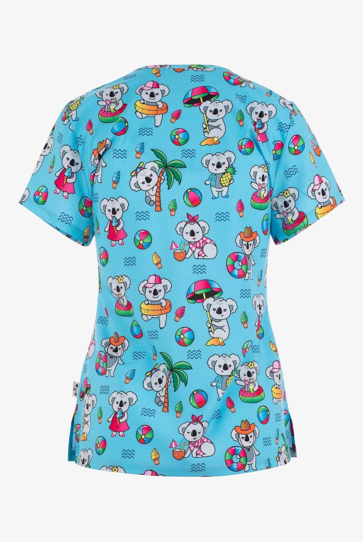 UA Exclusive Zavate Ava Therese Summertime Cute Koala Women’s 2-Pocket STRETCH V-Neck Print Top