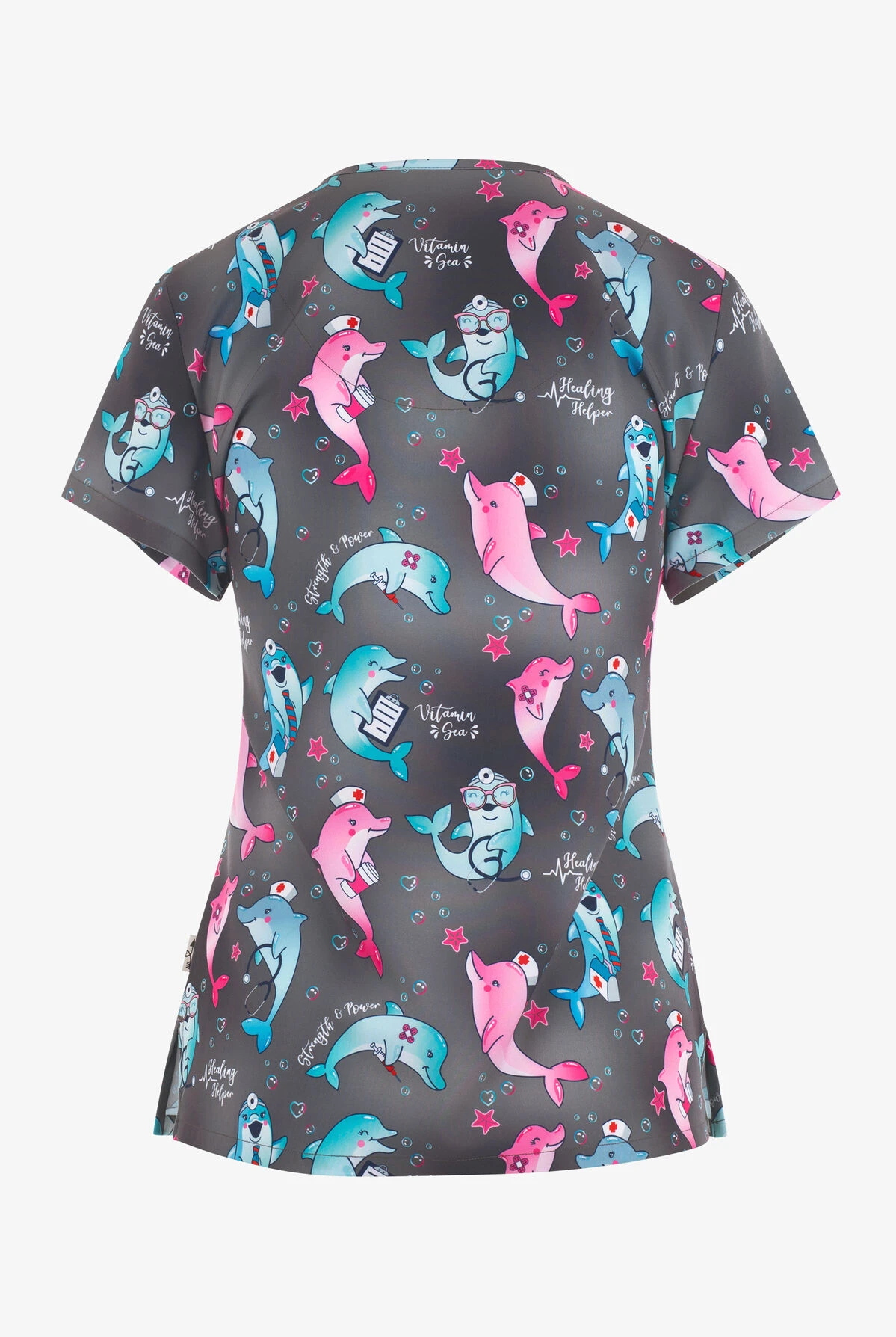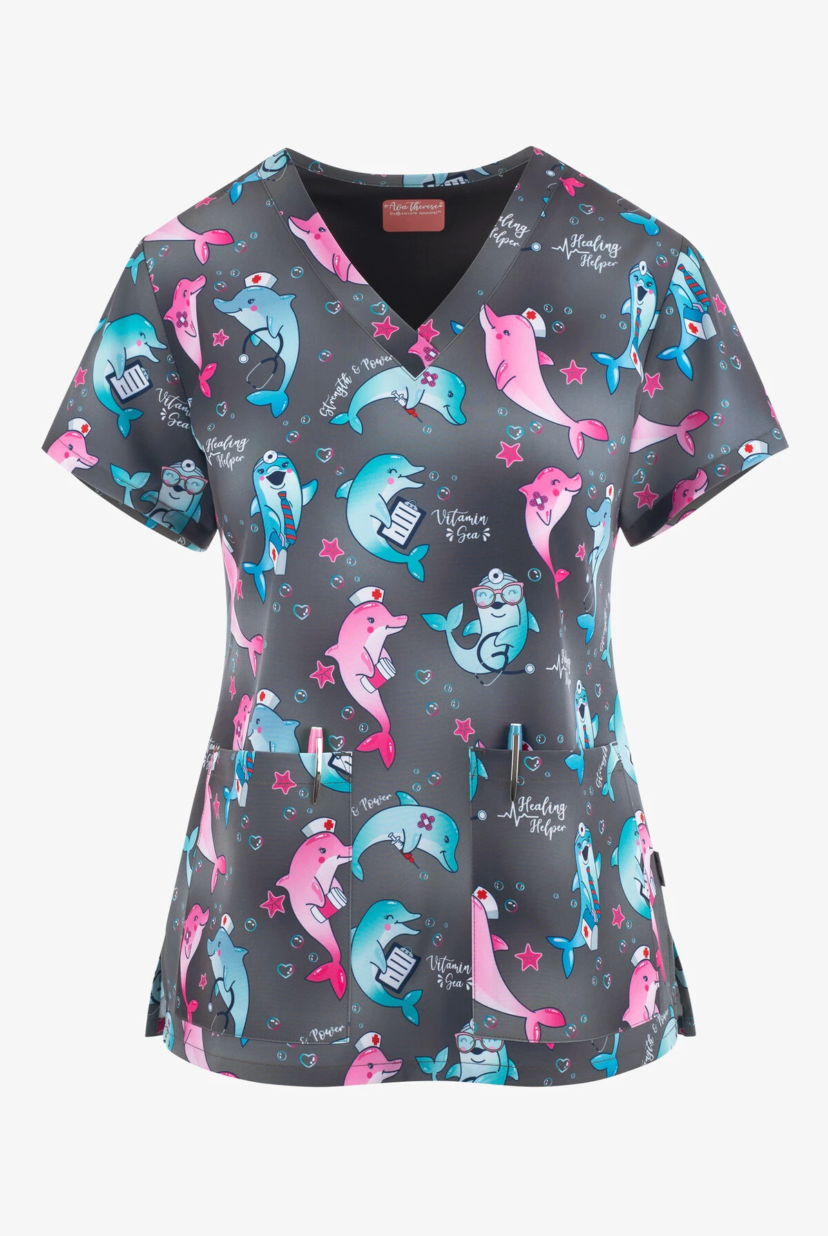 UA Exclusive Zavate Ava Therese Vitamin Sea Dolphins Women’s 2-Pocket STRETCH V-Neck Print Top