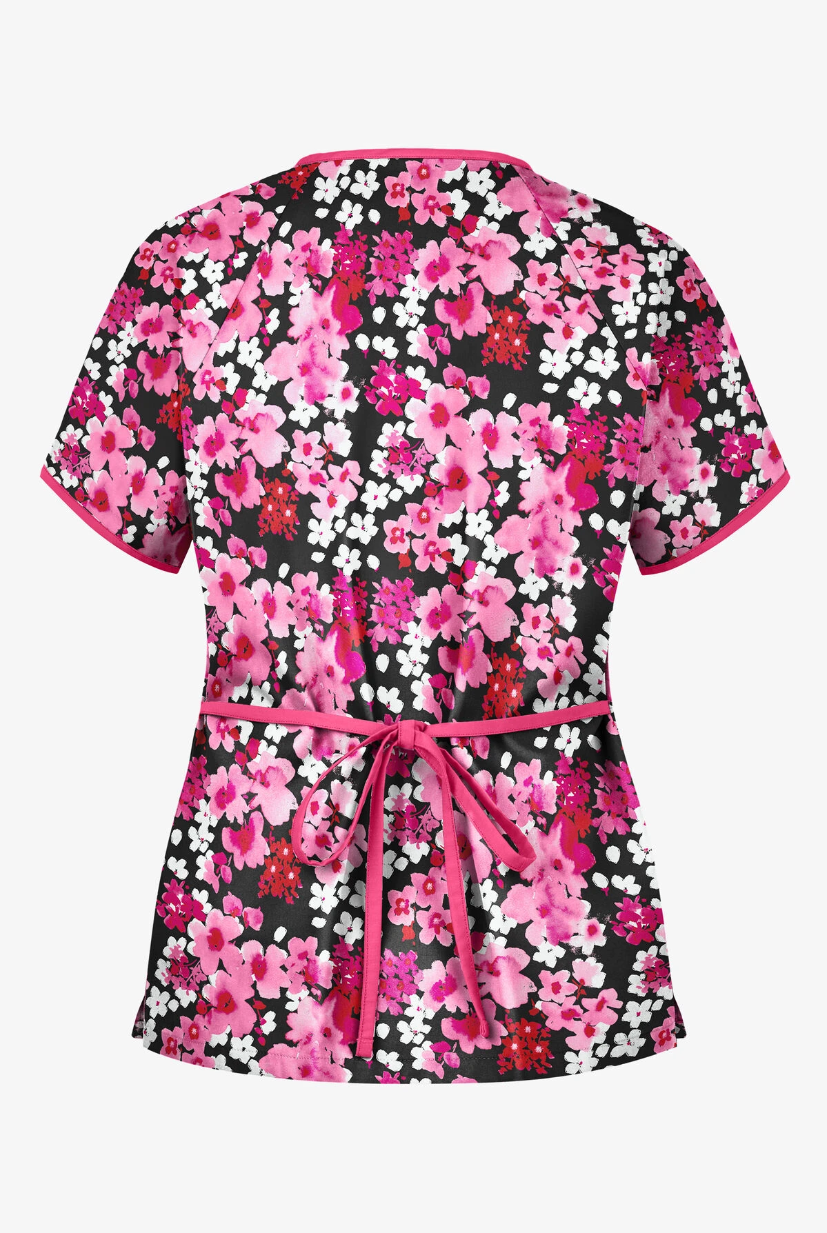 Butter-Soft Originals Pop Of Daisies Women’s 3-Pocket Mock Wrap With Ties Printed Scrub Top