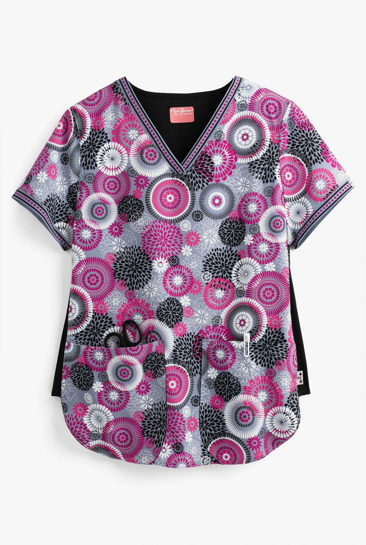 Zavate Ava Therese Raspberry Splash Mary Women’s 2-Pocket V-Neck Print Scrub Top