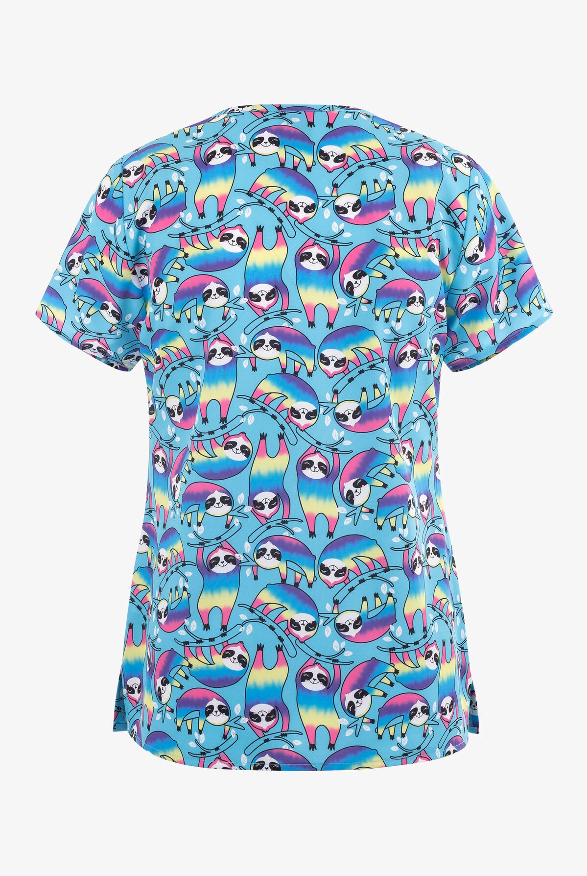 - Cool rainbow tie dyed sloths chillaxing on a blue background